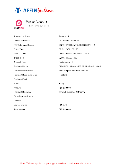 Balu: Siti Azimah Tajuddin (CIMB 7065548933)